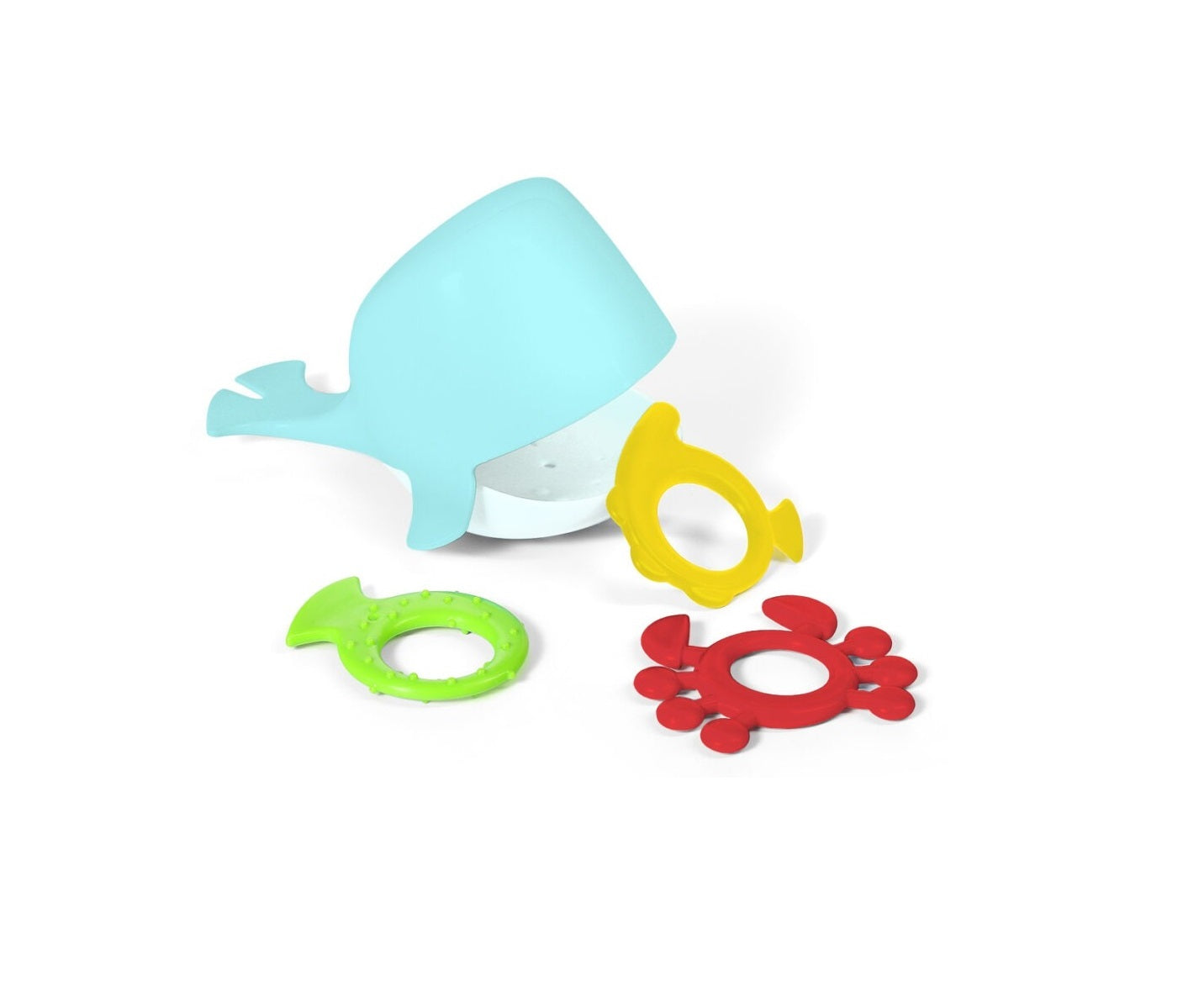 Balena și animalele acvatice colorate il vor face pe cel mic să iubească baița. Ele stimuleaza vederea, capacitatea de prindere și coordonarea.
