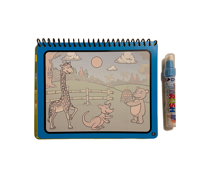 Cartea de colorat cu apa îi permite celui mic să se distreze colorând paginile cu animaluțe fară să facă dezordine și după ce se usucă apa să înceapă din nou.