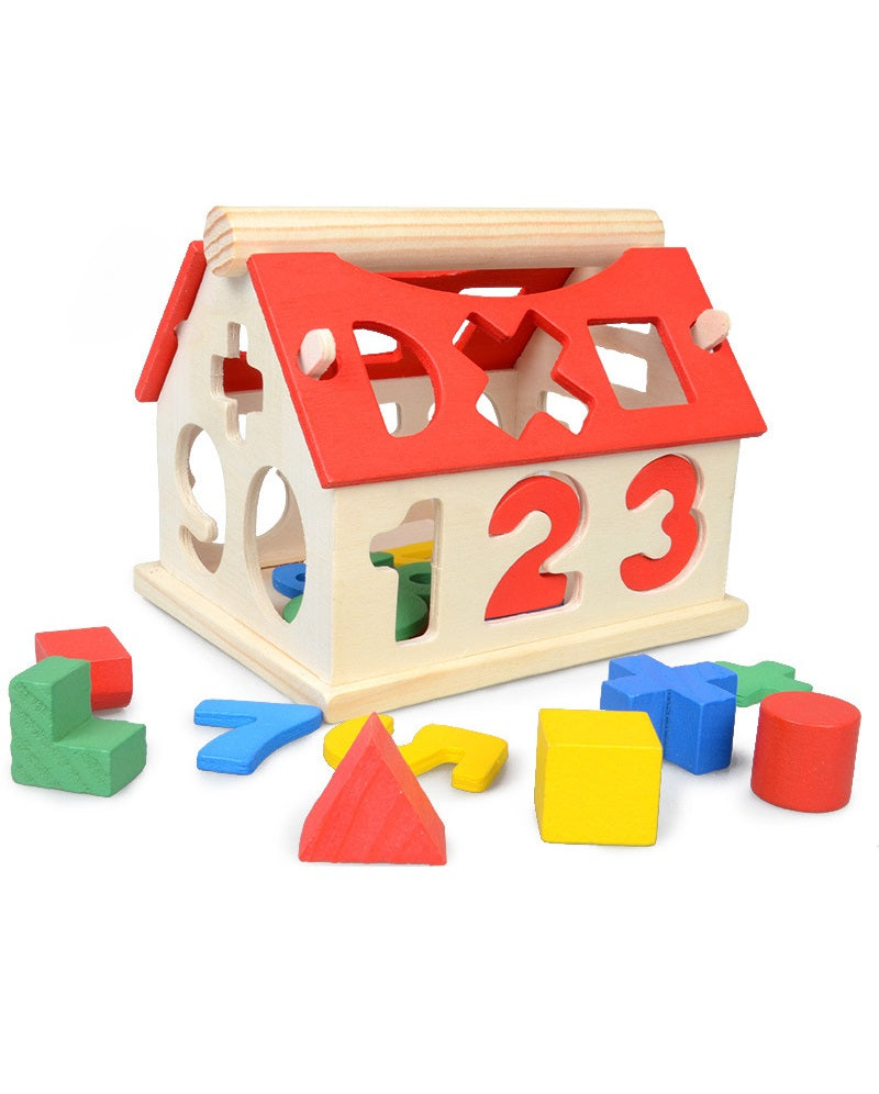 Aceasta este o jucărie educativă din lemn pentru sortarea formelor și cifrelor, cunoscută și sub denumirea de „Casa Digitală a Inteligenței” sau „Căsuța cu Numere din Lemn”.