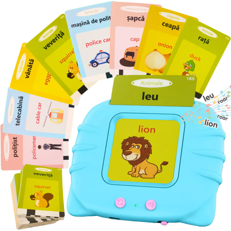 O jucărie educativă interactivă concepută pentru copii, care îi ajută să învețe limba română și engleză într-un mod distractiv și intuitiv. Prin intermediul cititorului de carduri, copiii vor recunoaște animalele, fructele, legumele, vehiculele și multe alte obiecte, asociind imaginile cu denumirile corespunzătoare.