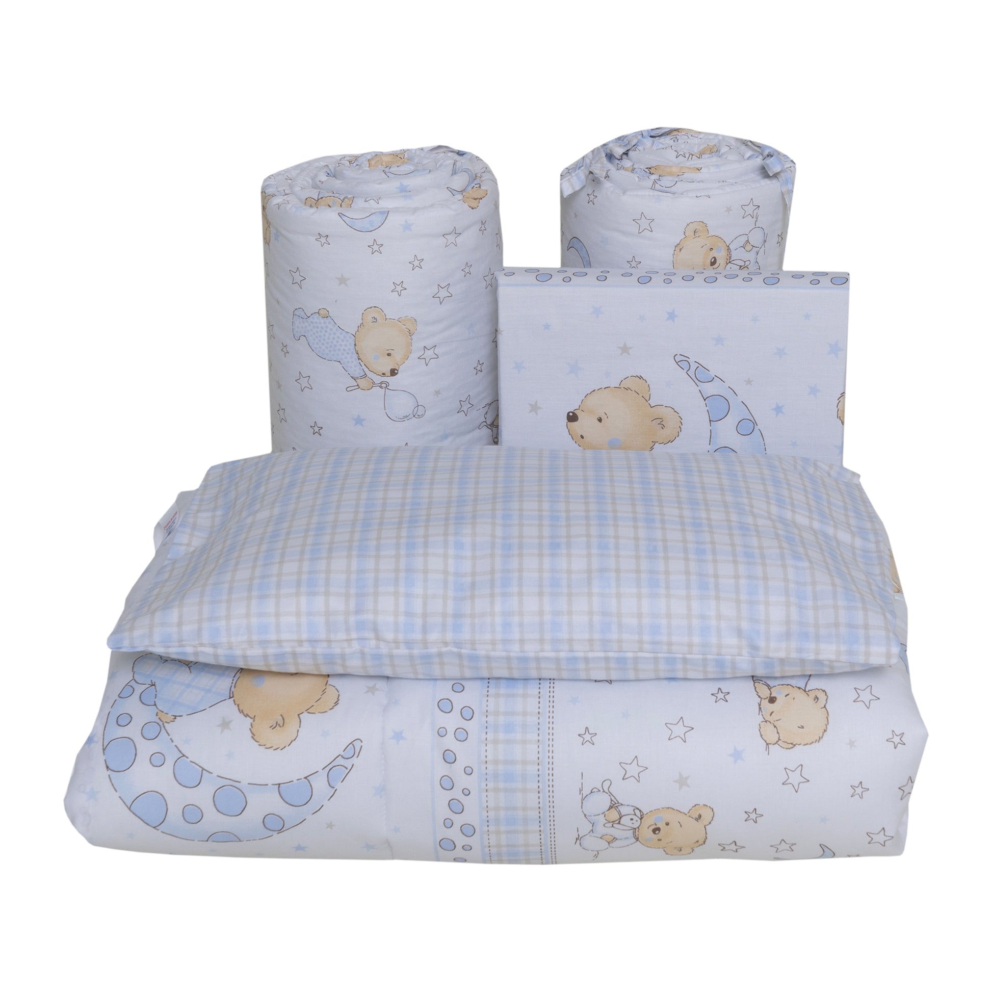 Set lenjerie bumbac 5 piese pentru saltea de 120 x 60 cm, Bear Dreams Alb