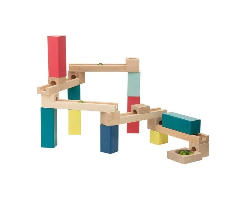 Cu multe posibilități de construcție traseul cu bile este o jucărie interesantă pentru cei mici care vor experimenta să vadă ce se întâmplă daca mută una sau mai multe piese în poziții diferite.